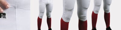 • Envelope thigh and knee pad system holds pads firmly in place
