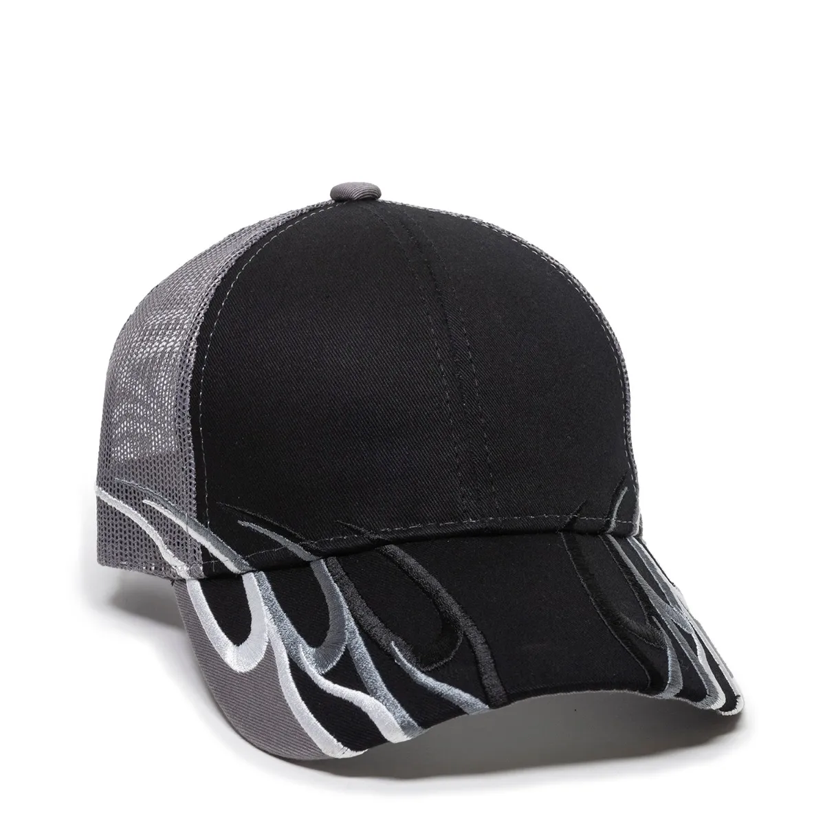 Mid to Low Crown ,Mesh Back,Cotton Twill Front Panels,Mesh Back Panels,Pre-Curved Visor,Structured,Hook/Loop Tape Closure,Embroidered Design on Visor
