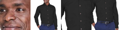 • Fused collar, cuffs, and placket