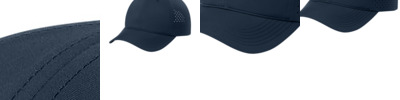 100% polyester Moisture-wicking UPF rating of 50 (front panels and bill only) Stretch sweatband Laser cut teardrop-shaped perforation Unstructured Low-profile Curved bill Elastic and D-ring with silicone tab Low-profile hook and loop closure